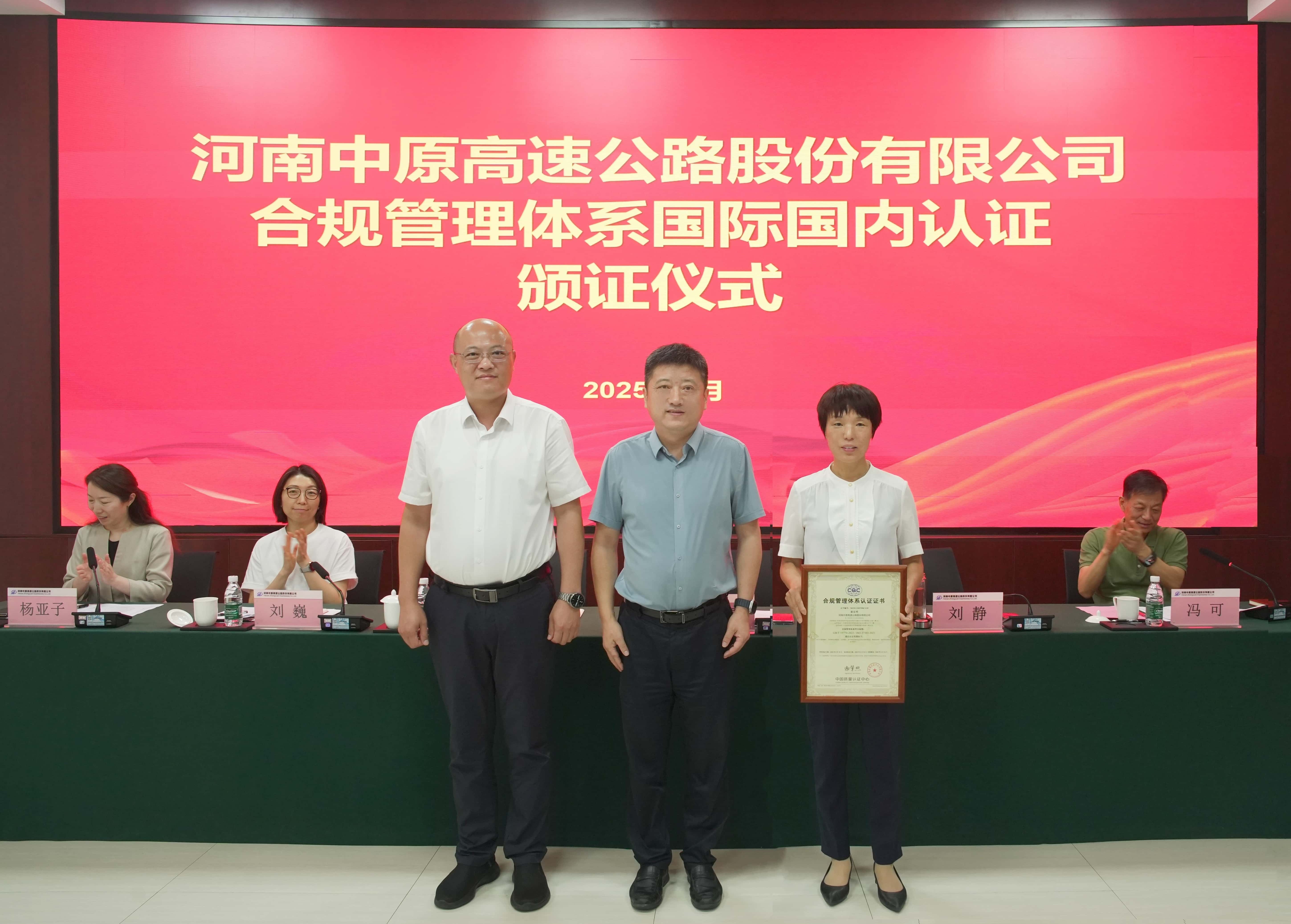 集團(tuán)黨委委員、副總經(jīng)理袁凍雷參加中原高速合規(guī)“雙認(rèn)證”頒證儀式并專題聽取科創(chuàng)工作匯報